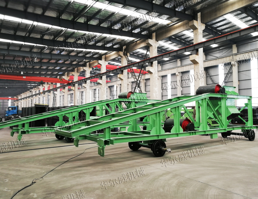 皮帶輸送機卸料小車屬于卸料裝置的一種,可以在輸送機水平段任意點卸料,方便整體布料。因帶有鋼軌,能輕松移動,可以實現(xiàn)兩側(cè)卸料或者單側(cè)卸料。根據(jù)需要可以分別設(shè)計成三通(中間和兩側(cè),但是不可以中間和兩側(cè)同時卸料)、二通(兩側(cè)或中間和單側(cè))和單側(cè)卸料。與主皮帶機相配套共分TD75、DTII和DTIIA型卸料車。